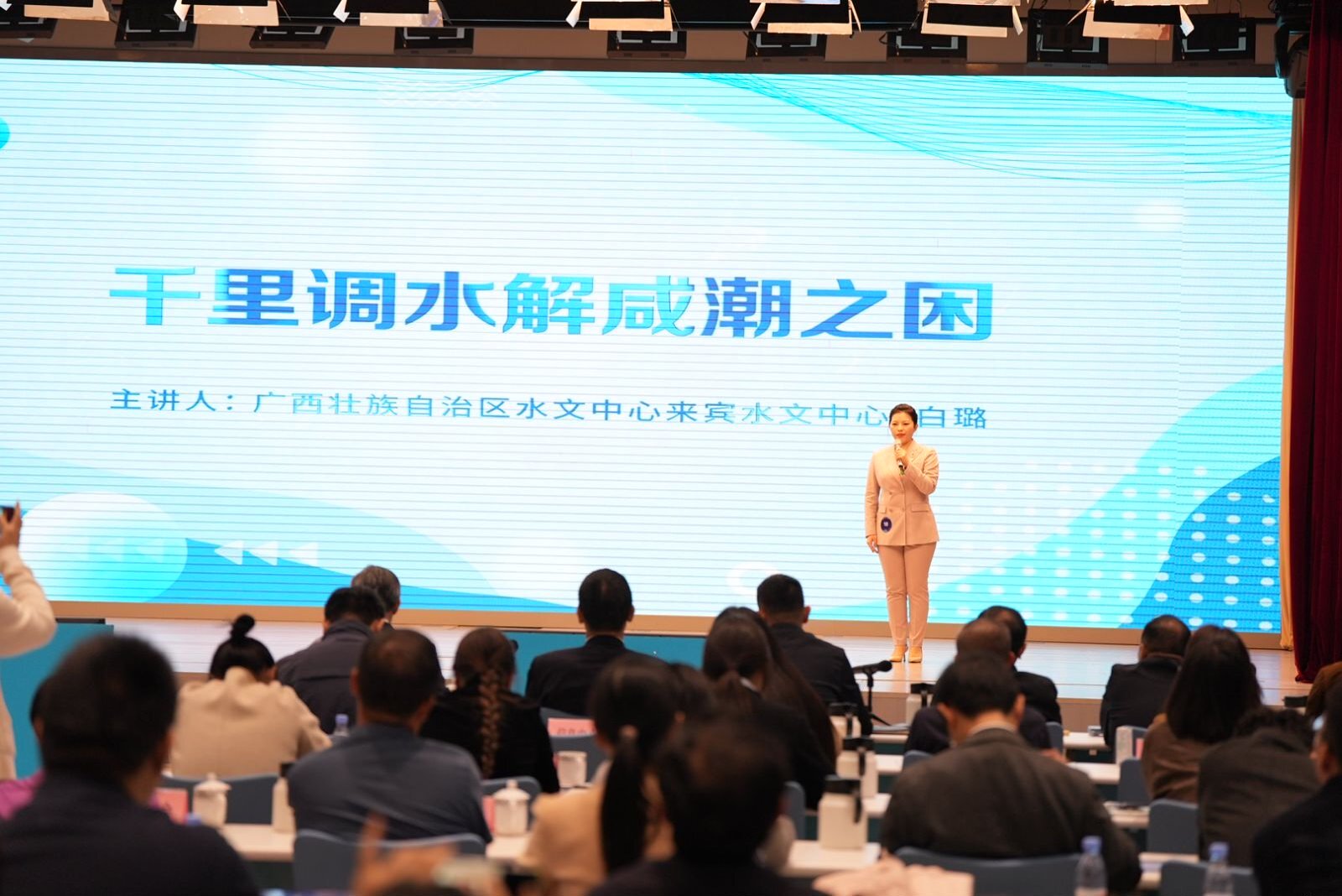 此次大赛,经过预选赛、半决赛的层层选拔,来宾水文中心白璐脱颖而出,成功跻身总决赛。在决赛中,她以《千里调水解咸潮之困》为题,紧扣大赛主题,结合水利科技前沿与民生关切,深入浅出地讲述了跨区域调水在应对咸潮侵袭中的重要作用,充分展现了广西水文人扎实的专业素养与昂扬的精神风貌,最终荣获一等奖。这一优异成绩的取得,不仅是白璐同志个人的荣誉,更是近年来广西水文高度重视科技人才培养、强化岗位练兵、扎实推进科普能力建设成效的体现。
