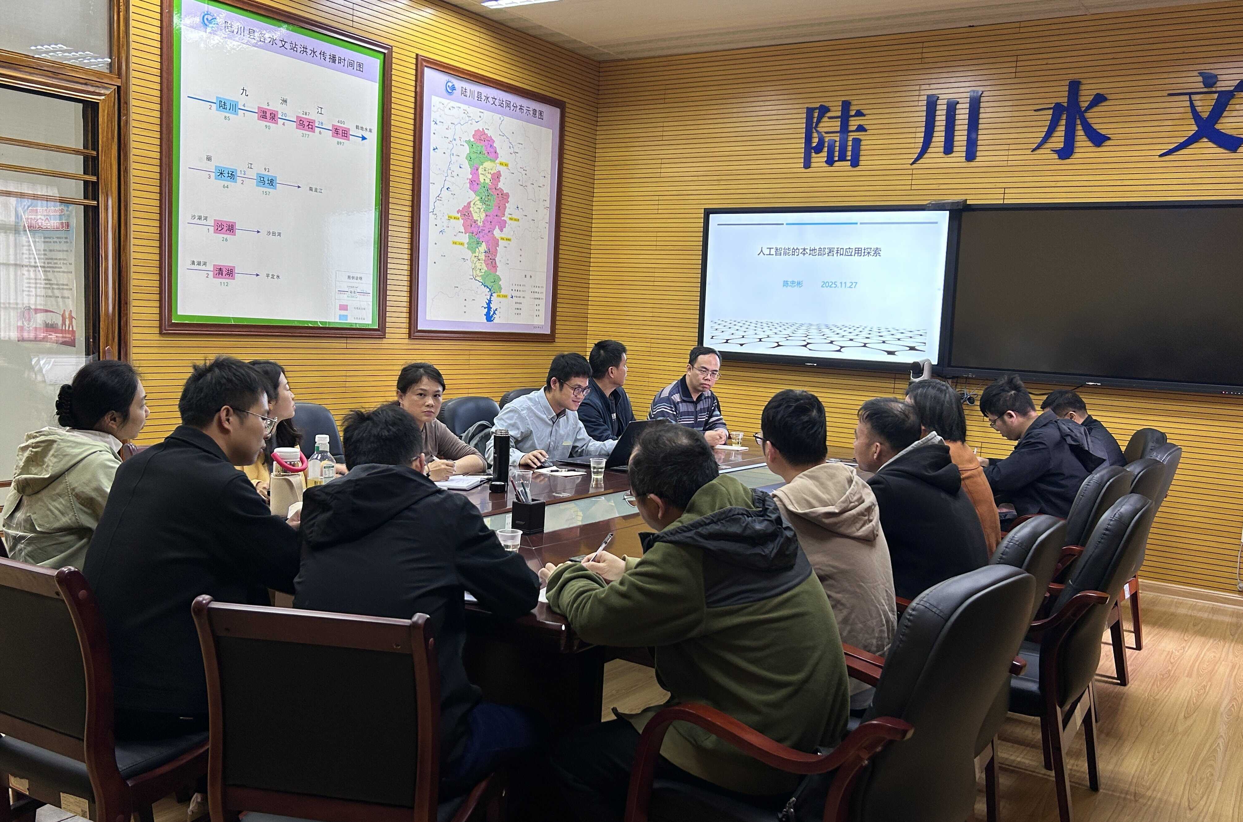 此次培训围绕水文现代化建设与发展需要,采取“理论讲解+实操演示”相结合的方式,由水情科技术骨干进行授课。内容主要有水情预警系统新功能、人工智能本地化部署与应用、网络安全知识、科技论文写作及数字孪生技术等。授课人员重点讲解了自主开发的水情预警系统“预演”“预案”新功能的应用,演示了本地化部署DeepSeek和通义千问等AI大模型,实现自然语言灵活查询水文数据、精准校验信息专报等应用场景。